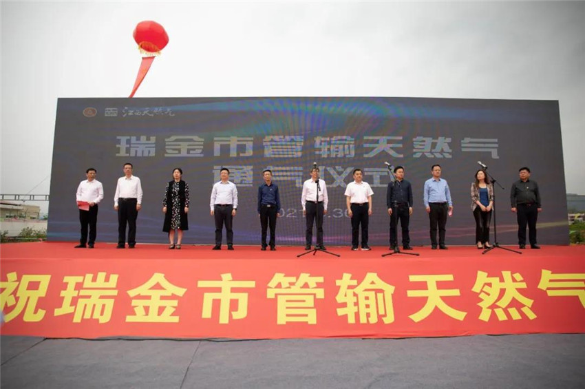 投产通气仪式上,瑞金市委常委、常务副市长刘晓龙代表市委市政府对瑞金分输站的投产通气表示祝贺。他指出,瑞金市天然气管输通气是贯彻落实省委省政府提出的2021年“县县通气”决策部署的崭新成果,也是各级各部门支持原中央苏区振兴发展的重要体现,将极大改善瑞金市的发展环境,进一步优化能源结构,增强城市功能,改善居民生活质量,为推动瑞金市实现高质量跨越式发展提供强劲动力。接下来,瑞金市将积极抓住这一机遇,加快相关配套设施建设,加大使用力度,让更多居民、更多企业用上清洁、安全、经济的管输天然气。