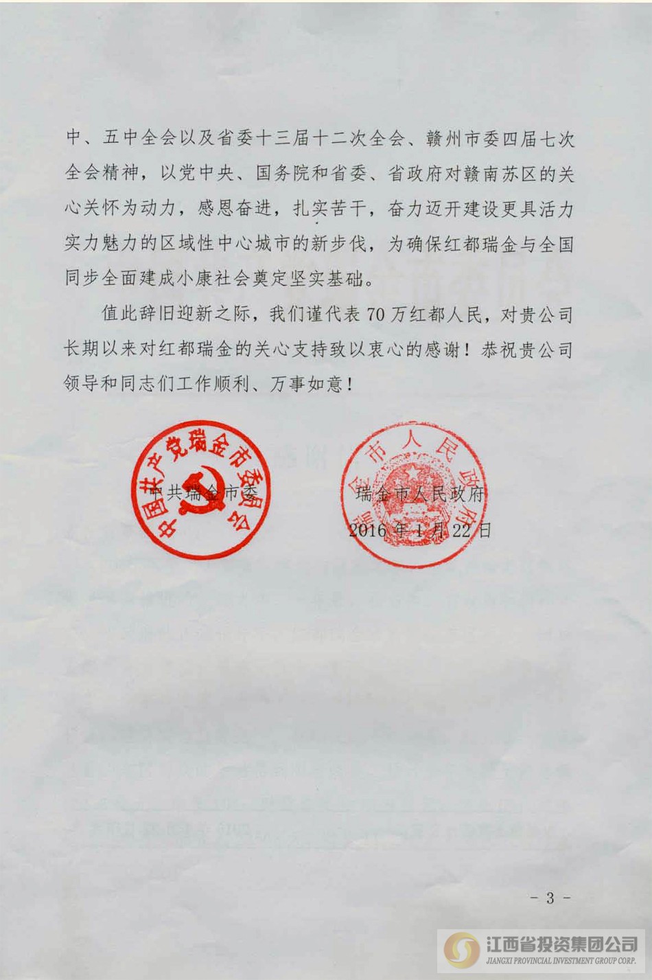 来自瑞金市、寻乌县的感谢信