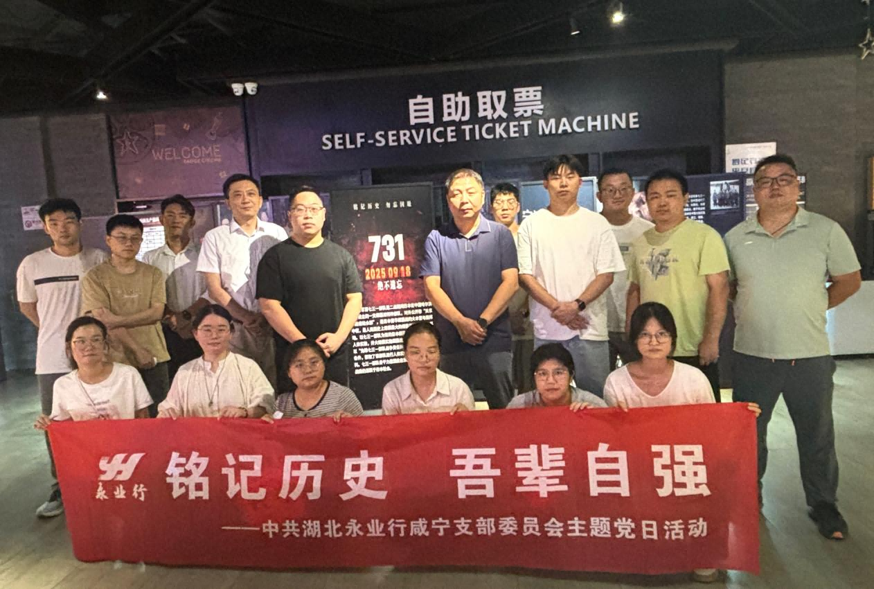 永业行咸宁分部开展“铭记历史 吾辈自强”主题党日活动 2025-09-19 为纪念“九·一八”事变93周年,大力弘扬爱国主义精神,深切缅怀革命先烈,激发员工铭记历史、砥砺前行的爱国热情。9月18日,永业行咸宁分部组织员工集中观看抗战主题电影《731》开展“铭记历史 吾辈自强”主题党日活动。 影片通过平民视角揭露日军反人类暴行,讲述了1945年抗战胜利前夕,侵华日军第七三一部队在哈尔滨平房区秘密进行惨无人道的细菌战研究,大肆抓捕平民进行活体实验,妄图以此扭转败局,展现了绝境下国人不屈的反抗精神。 当&ldqu MORE