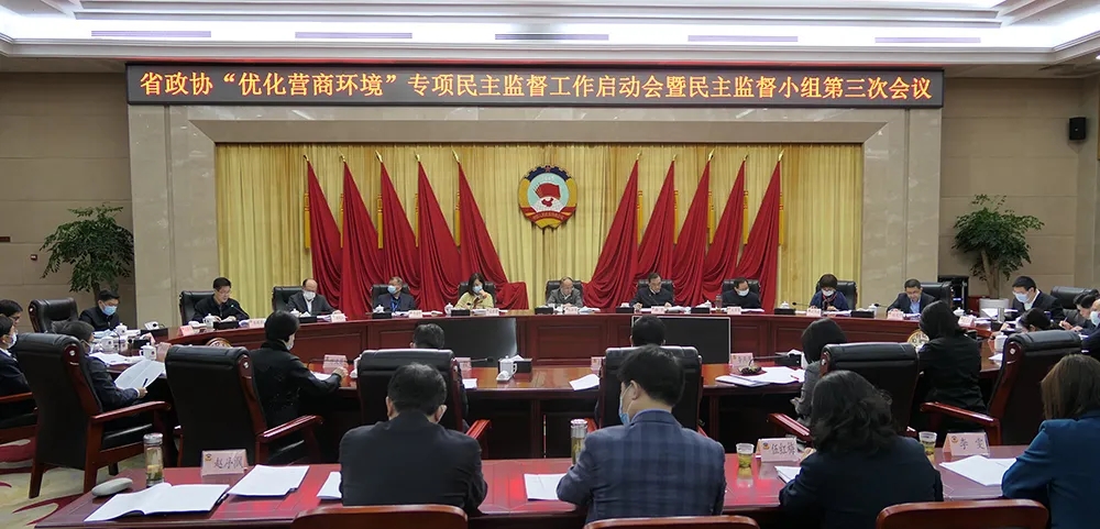 会议由省政协副秘书长梅雪主持。省政协副主席张柏青发表了讲话,他充分肯定了各个部门营商环境工作成效,要求大家充分认识《民法典》对于促进营商环境的重要意义,深入贯彻执行《民法典》,营造法治化营商环境,不断改革创新,不断优化各项工作,不断提升营商环境;深化省政协民主监督职能,丰富监督形式,发挥政协各方面的力量和专业优势,将民主监督寓于服务和帮助之中,为湖北省高质量发展做出独特力量。
