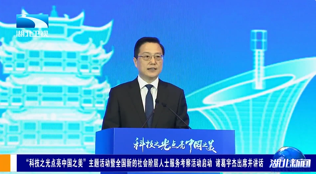 诸葛宇杰致辞说,近年来,湖北深入贯彻习近平总书记关于科技创新的重要论述和考察湖北重要讲话精神,加快打造具有全国影响力的科技创新高地,系统性重塑科技力量,一体推进教育科技人才事业发展,重大成果开创性突破,先进制造业产业集群加速崛起,科技创新成为湖北最大优势、最强动能。希望服务团积极利用自身资源和影响力,广泛宣传湖北发展新优势,凝聚支点建设强大合力,携手打造各展其能的高端人才集聚地、开放包容的原始创新策源地、动能澎湃的产业创新引领地、活力奔涌的创新生态示范地。