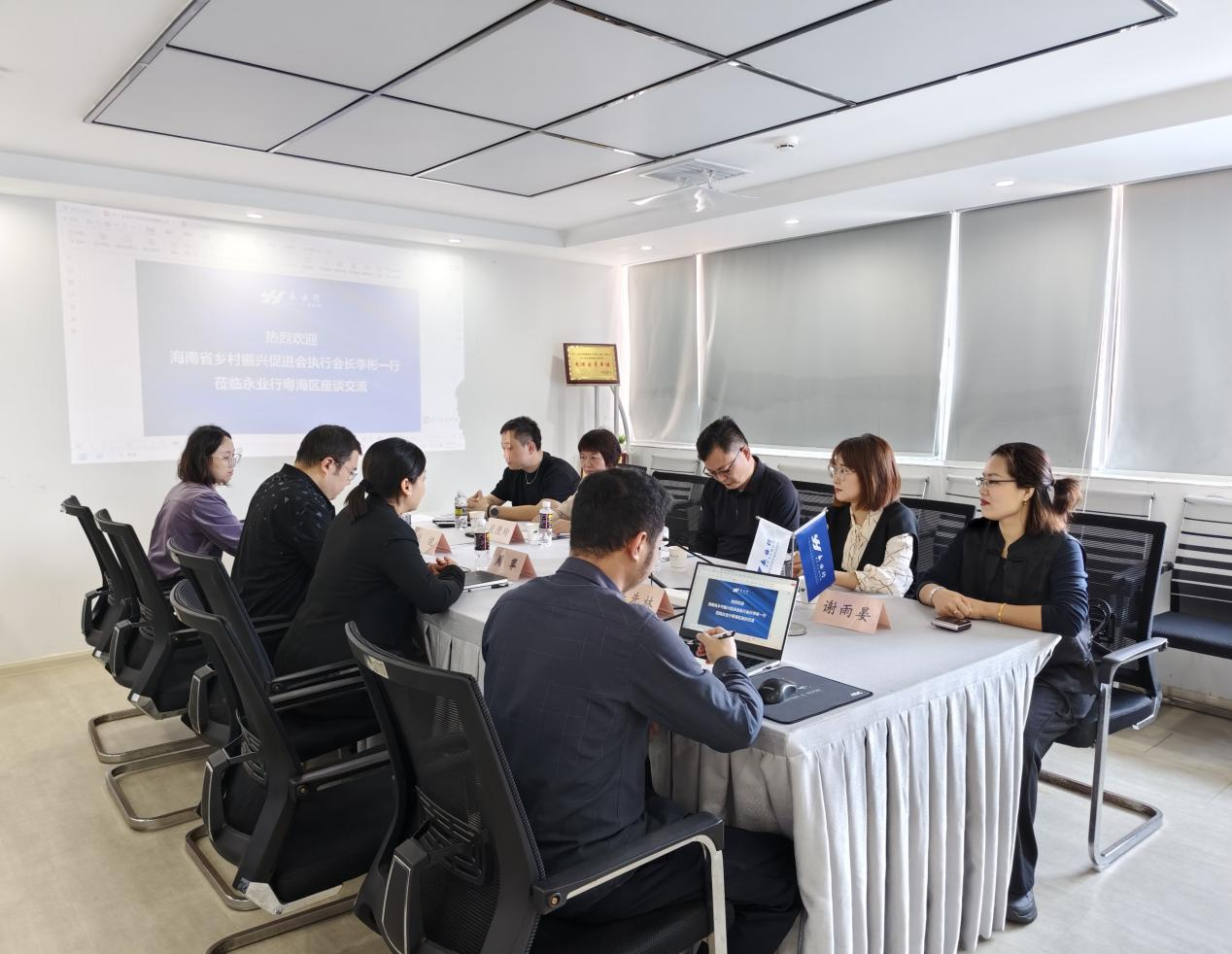 2025年12月3日,海南省乡村振兴促进会执行会长李彬、党支部书记裴漫玲一行莅临永业行粤海区座谈交流。永业行粤海区总经理周攀热情接待并参加座谈。