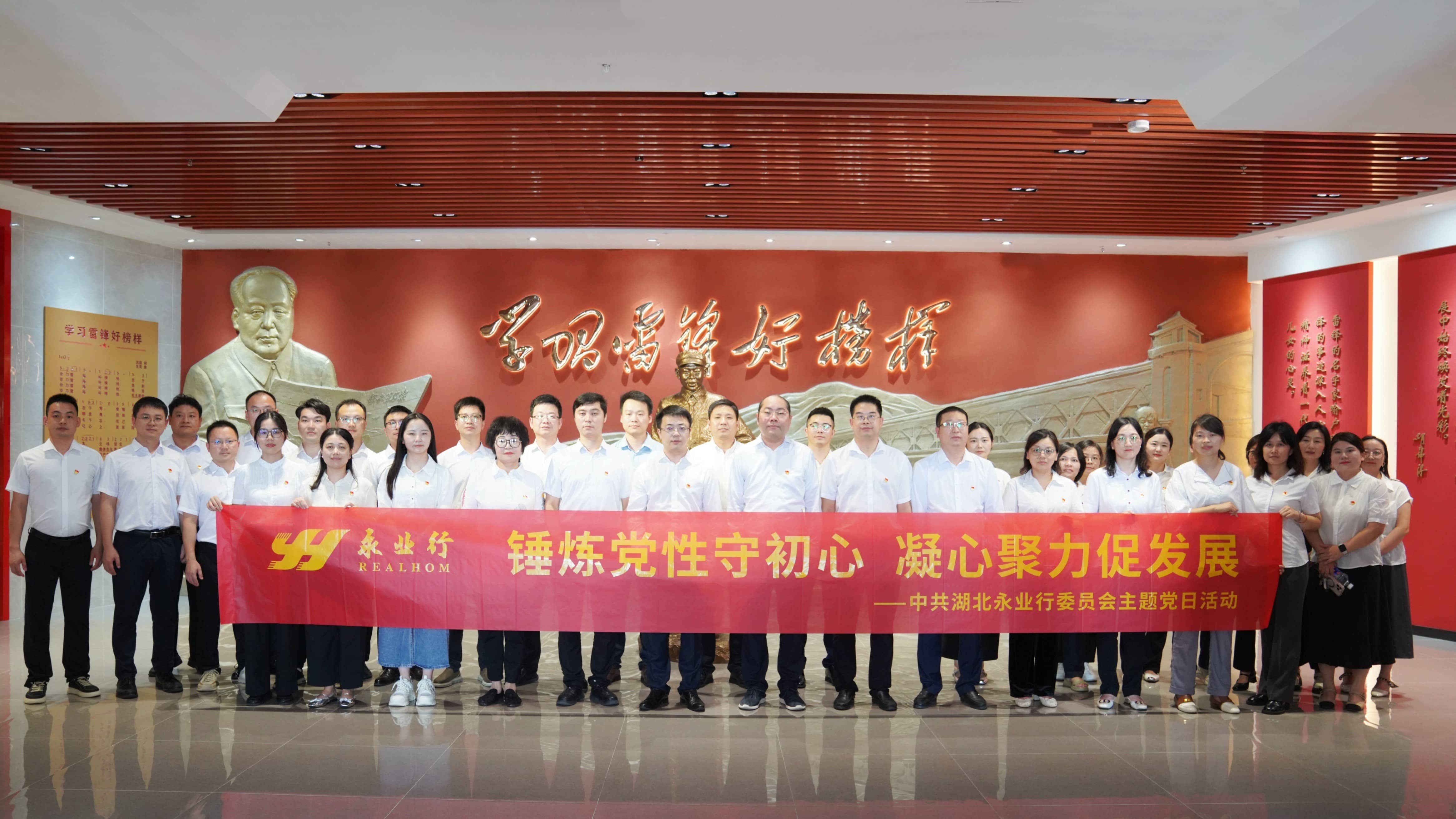 永业行开展 “锤炼党性守初心 凝心聚力促发展” 主题党日活动 2025-07-15 2025年7月12日,中共湖北永业行委员会组织开展“锤炼党性守初心 凝心聚力促发展”主题党日活动,赴咸宁嘉鱼县武汉东湖学院雷锋文史馆参观学习。本次活动特邀民进湖北永业行支部、民革湖北永业行支部、农工党湖北永业行支部等统战人士及中高层管理人员、骨干员工一行60余人参加活动。 在武汉东湖学院雷锋文史馆,大家跟随讲解员的脚步,依次参观“序”“史”“文”“魂”“范”“跋”六大展区,回顾雷锋平凡而伟大的一生。雷锋“螺丝钉精神”“无私奉献精神”“向上向善态度”在展品中熠熠生辉,“雷锋七问”的铿锵话语引发强烈共鸣。大家纷纷表示,要以雷锋为镜,永葆奋斗本色,将“为人民服务”的信念扎根心底。 MORE