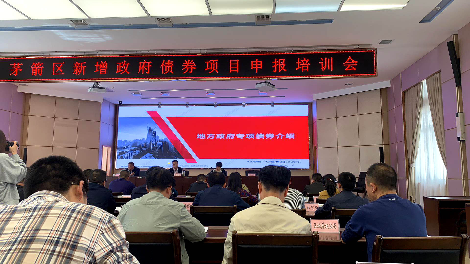 2019年5月8日,茅箭区财政局组织召开“茅箭区新增政府债券项目申报培训会”。永业行地产顾问事业部运营总监张丹、执行总经理李斯、房地产事业部副总经理王涛作为服务机构代表参加会议,并作专题培训。