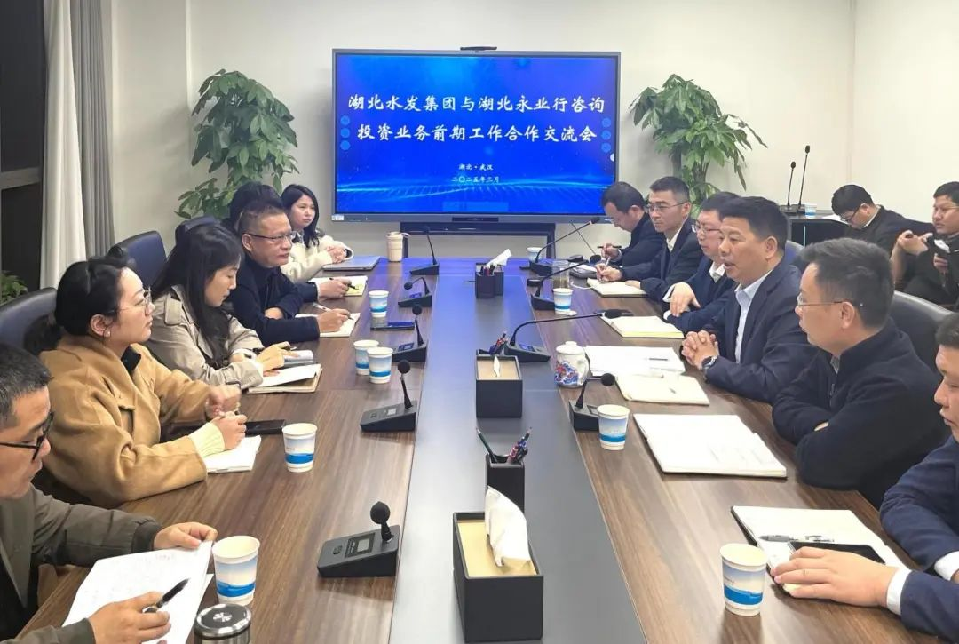 2025年3月30日,湖北水利发展集团有限公司(下称“水发集团”)举办投资业务前期工作合作交流会,集团投资发展部部长唐义军主持会议。永业行研发副总监、投资金融事业群执行总经理杨凤,市场副总监、投资金融事业群执行董事裴新桃带队参加会议。