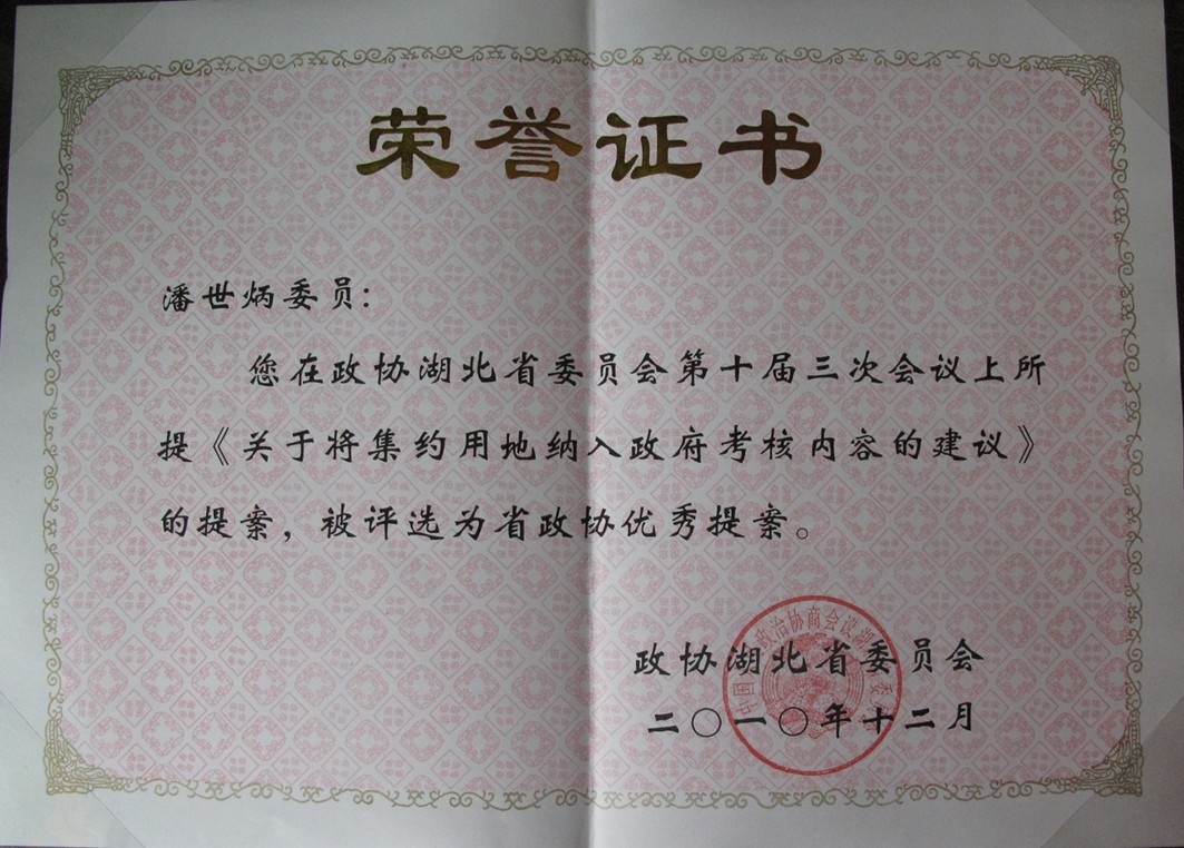 2011年2月22日,潘世炳的提案获得湖北省政协优秀提案奖